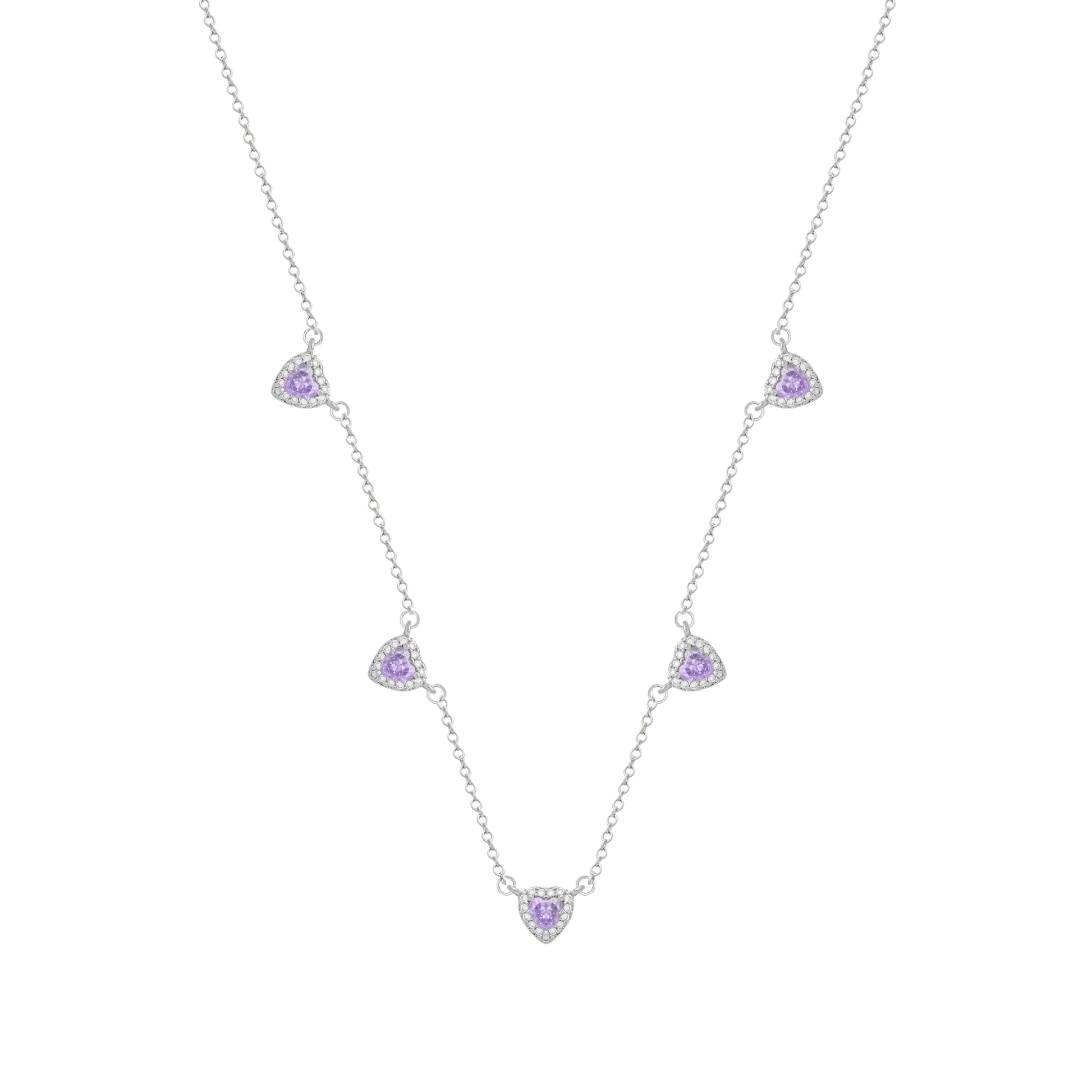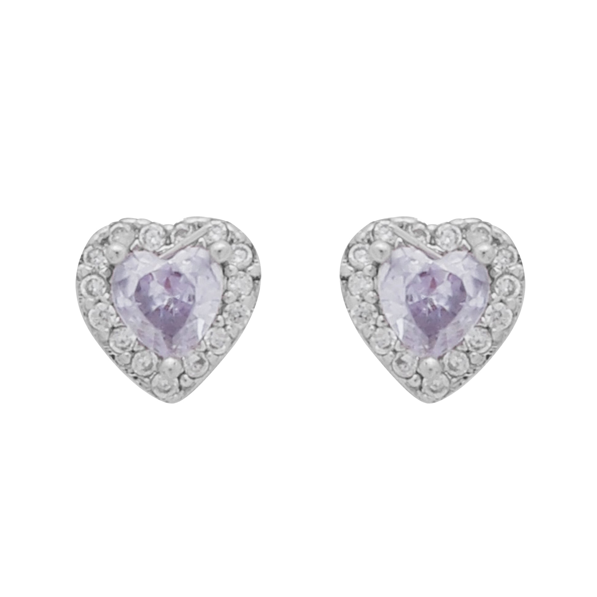 Conjunto Prateado de Coração Lilás Cravejado de Zircônia
